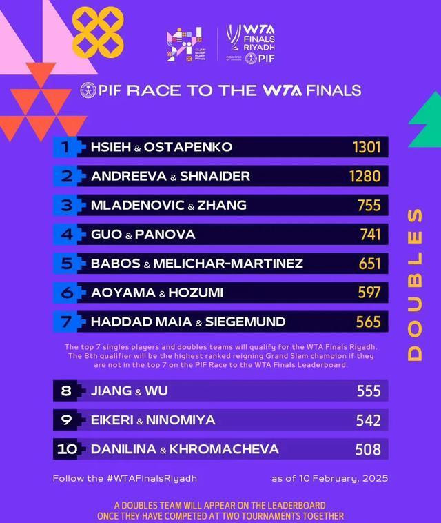 女双赛场,中国组合也传来捷报。蒋欣玗/吴芳娴在与2号种子奥斯塔彭科/谢淑薇的较量中,以6-2、6(3)-7、10-5的比分逆转得手,爆出大冷门,也为中国球员复仇得手。这场得手不仅展现了她们出色的相助和任意的斗志,也为中国网球增添了新的但愿。值得一提的是,凭借着中国球员在双打赛场的出色进展,张帅、郭涵煜和蒋欣玗当今都位列WTA通往利雅得年终总决赛的双打冠军积分榜前八,分裂排在第3、第4和第8位,中国金花在双打赛场上的竞争力遏抑小觑。