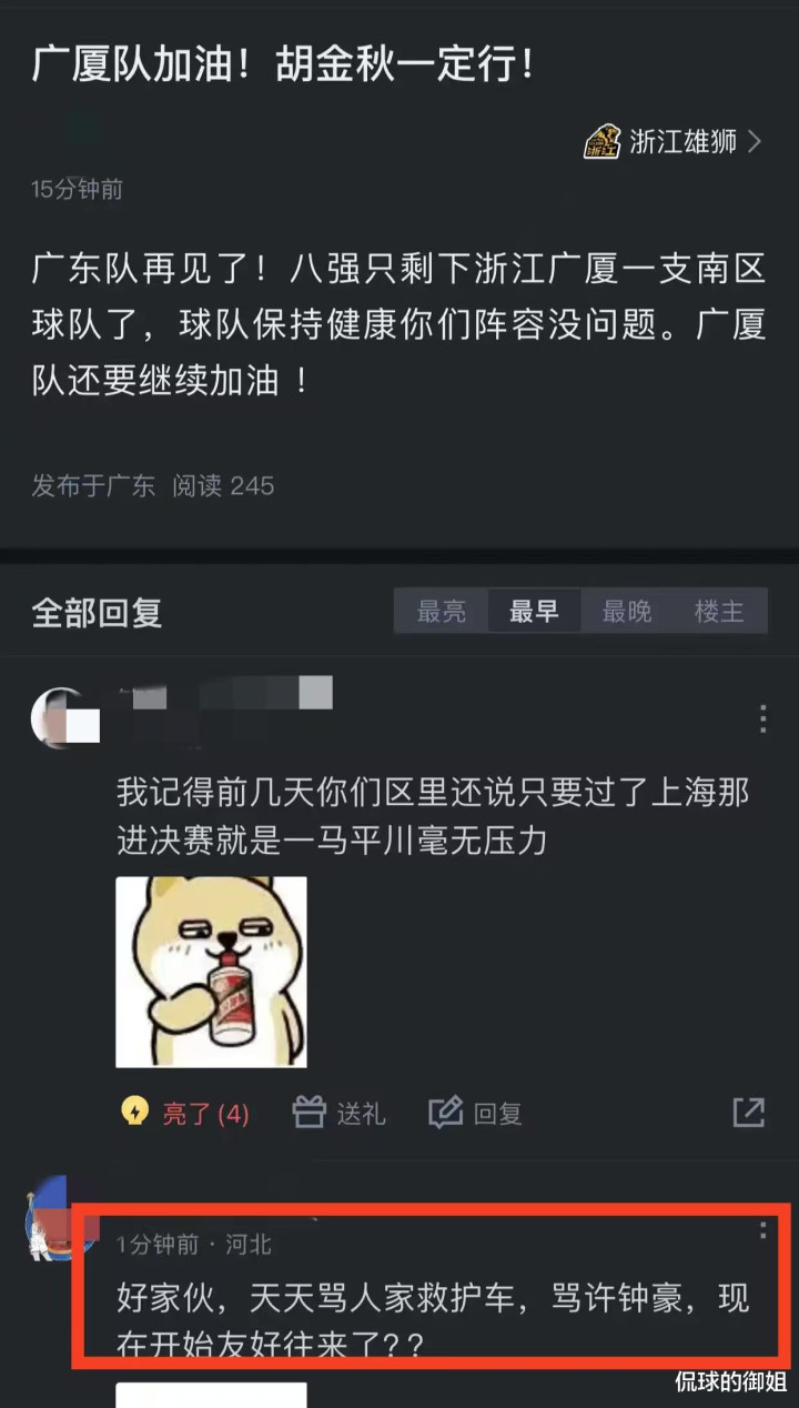 但是底下一条河北网友的驳倒亮了,他回话到:好家伙,天天骂东谈主家救护车,骂广厦许钟豪,目下运行友好交游了?如下图: